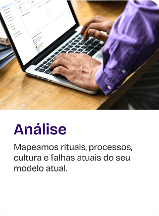 Mapeamos rituais, processos, cultura e falhas atuais do seu modelo atual.