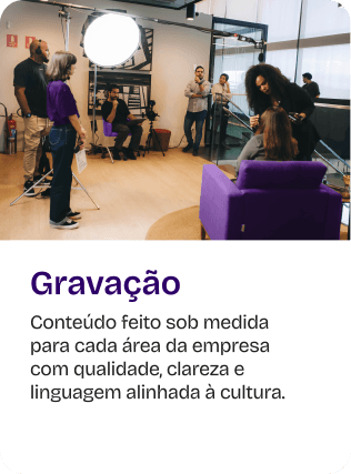 A Onbbo une análise de processos e setores, produção dos vídeos e entrega em uma plataforma de altíssima qualidade.