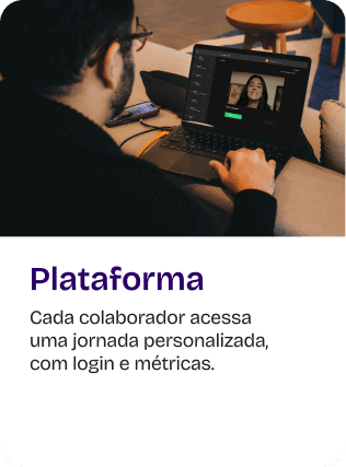Cada colaborador acessa uma jornada personalizada, com login e métricas.